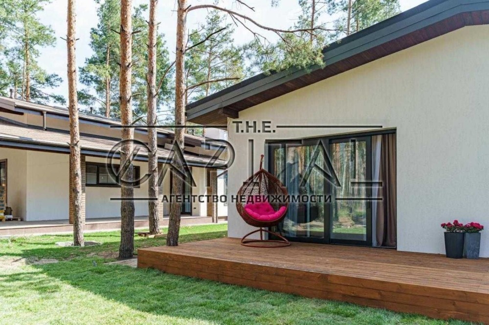 Будинок розташований серед соснового лісу поруч із каналом Дніпра.