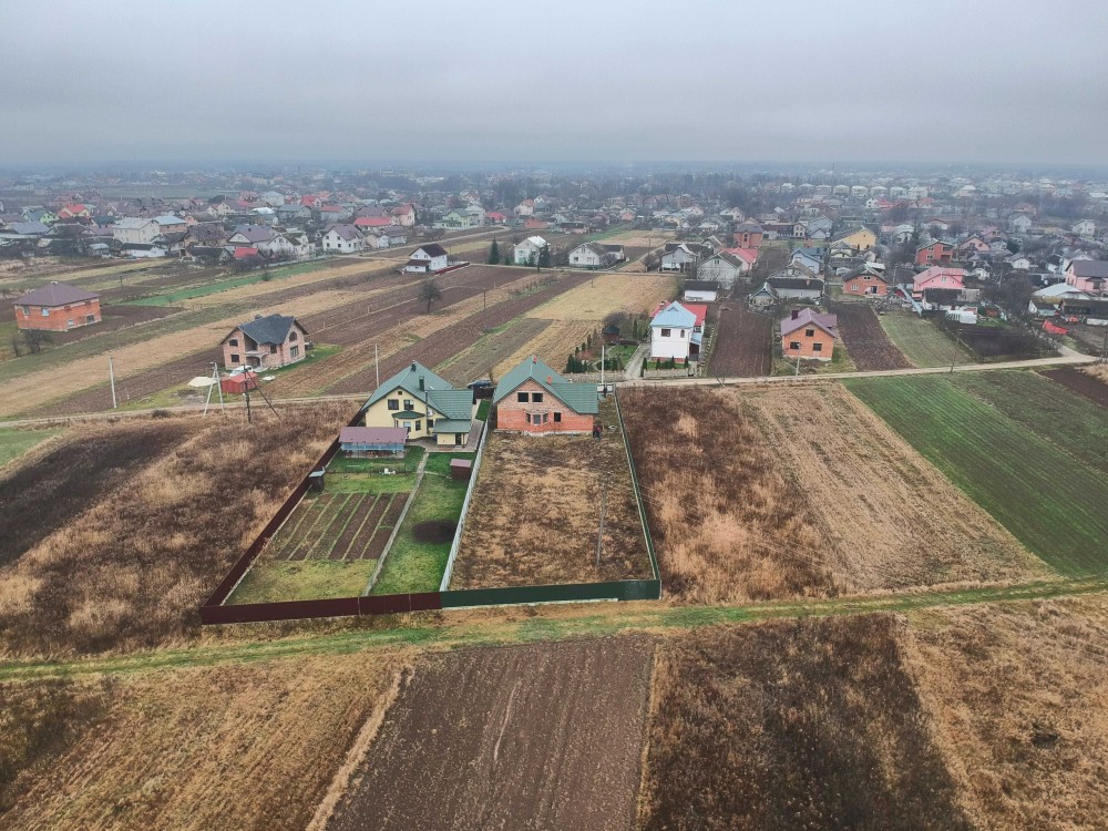- Будинок знаходиться на земельній ділянці площею 12.5 сотих, поділеній на дві ділянки по 6.24 сотих з окремими державними актами під будівництво та окремими заїздами з двох сторін. Є можливість будівництва ще одного будинку на даній ділянці або продажу частини ділянки.