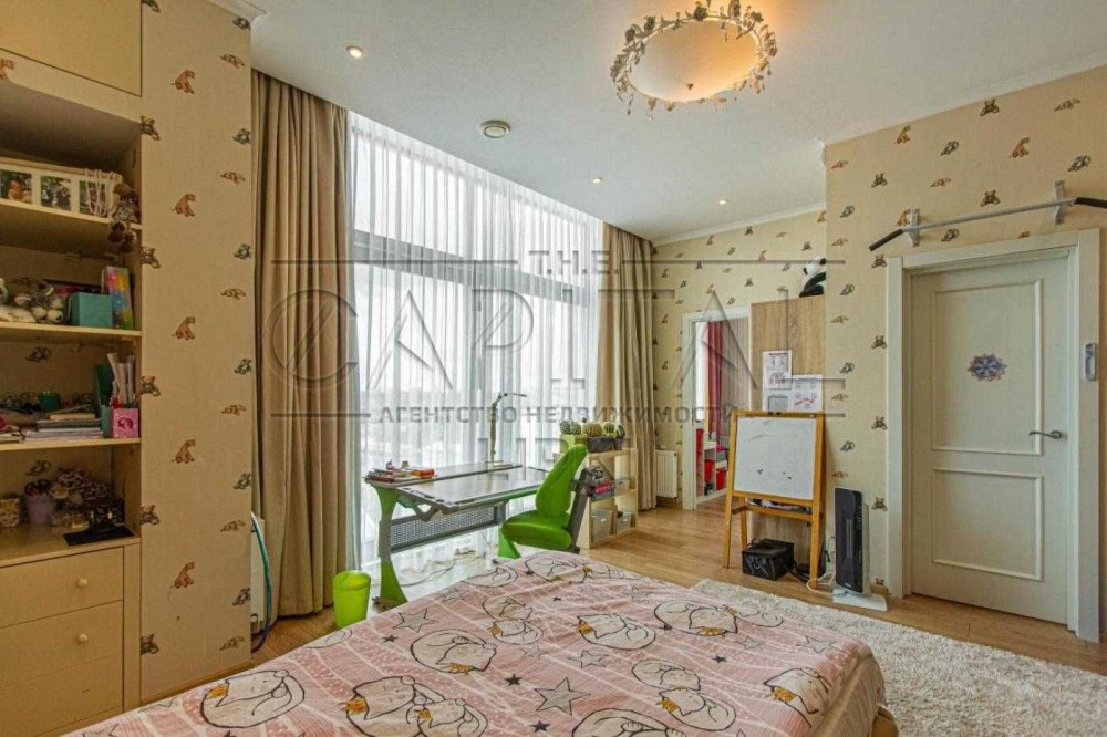 Другий рівень включає master-спальню з власною ванною кімнатою та гардеробними, гостьову спальню, дві дитячі кімнати з індивідуальними санвузлами та виходом на простору терасу (тераса без оздоблення — можливість реалізувати власний дизайн-проєкт).