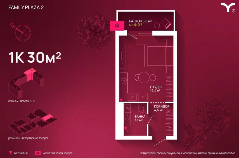Продається 1-к. квартира-студія в сучасному ЖК Family Plaza 2. - фото 4