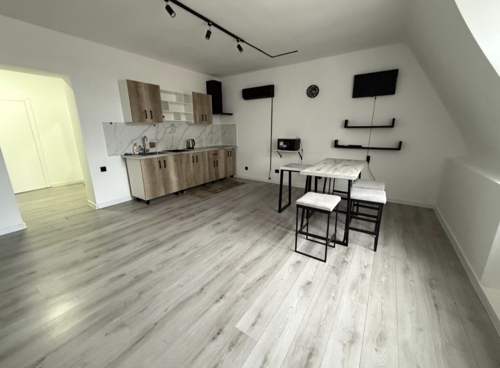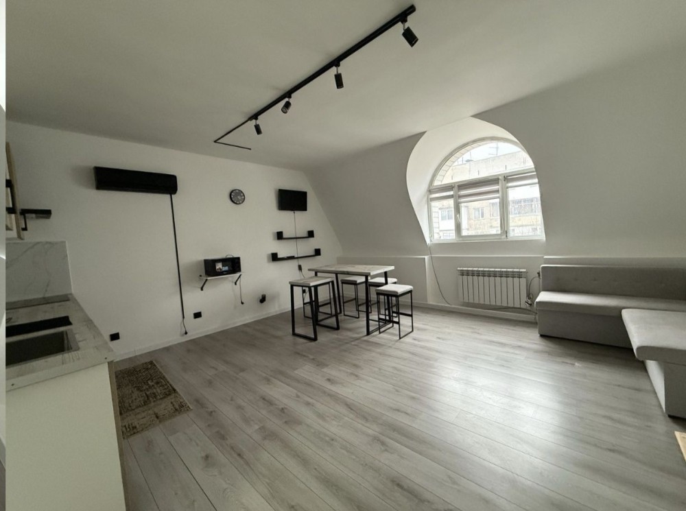 Простора кухня-вітальня 35 м² та окрема спальня із виходом на балкон.
