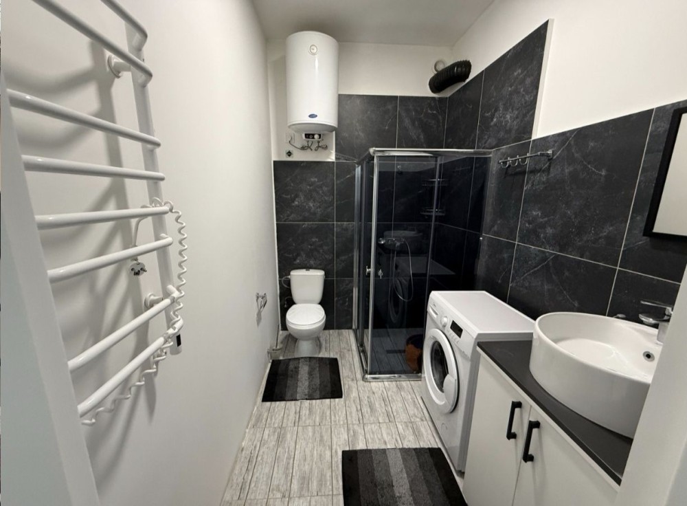 Є санвузол з душовою кабіною, встановлена пральна машина.