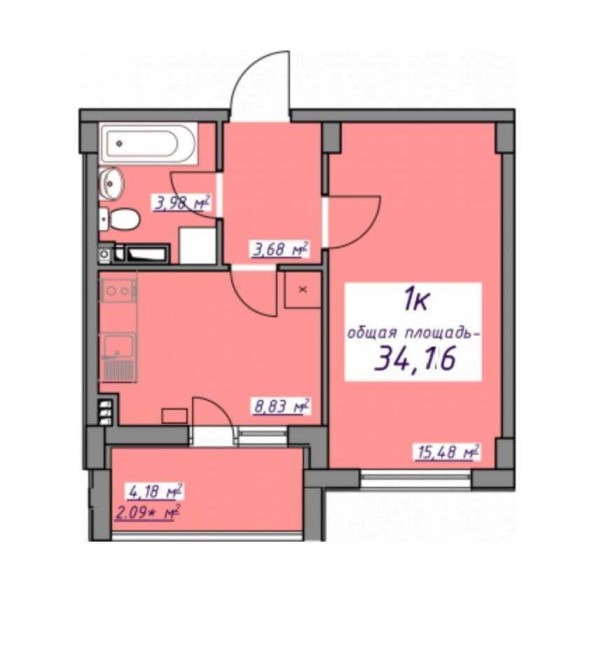 • Общая площадь 34.16 м2