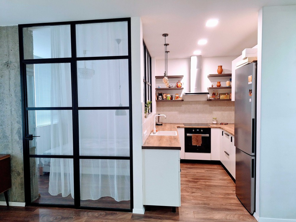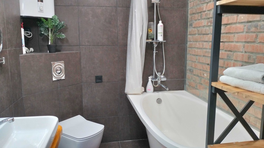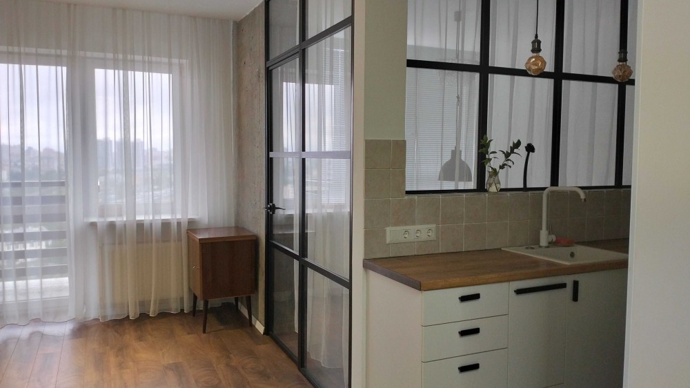 Ремонт в стилі "лофт" і оригінальне зонування вигідно відрізняють цю квартиру від інших - є окрема спальня, гостина з балконом, кухня, гардероб, сумісний с/в з ванною.