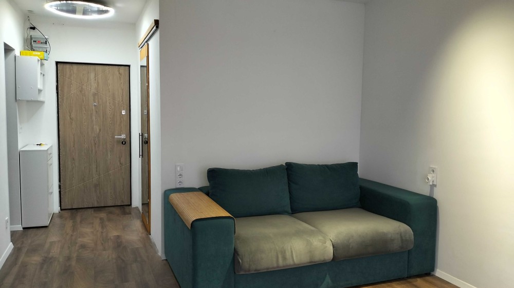 Квартира загальною площею 42,7 кв.м розташована на 18-му поверсі 25-ти поверхового будинку. Вікна виходять у двір на північний схід, тому вранці та першій половині дня в квартирі завжди сонячно. Також з вікон відкривається чудовий краєвид на місто.