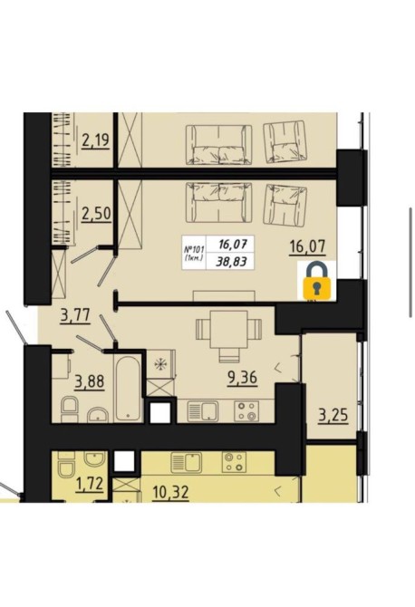 Площа — 38,5 м²