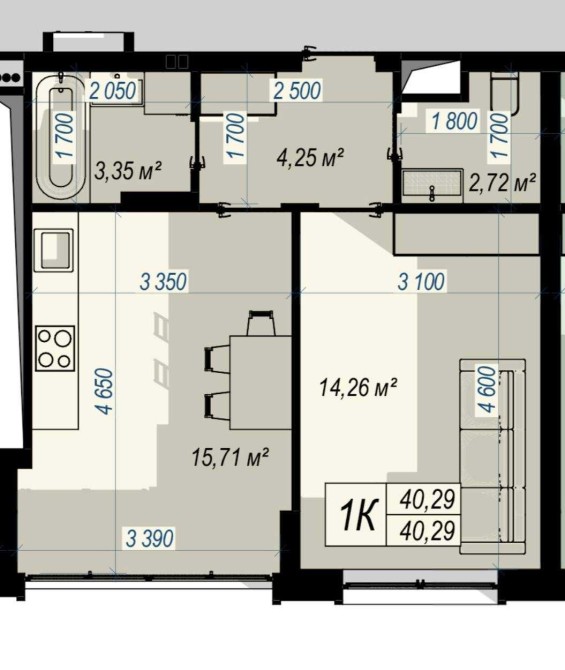 • Общая площадь 40.29 м2
