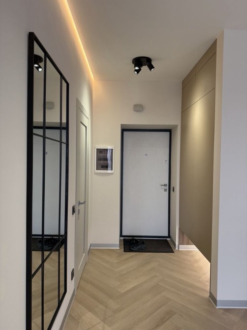 Планування: кухня-студія 17 м², окрема спальня, гардеробна, санвузол. Сучасний авторський ремонт, панорамні вікна.