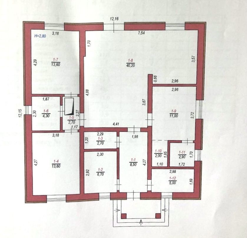 Товщина зовнішніх стін - 1,5 цеглини;