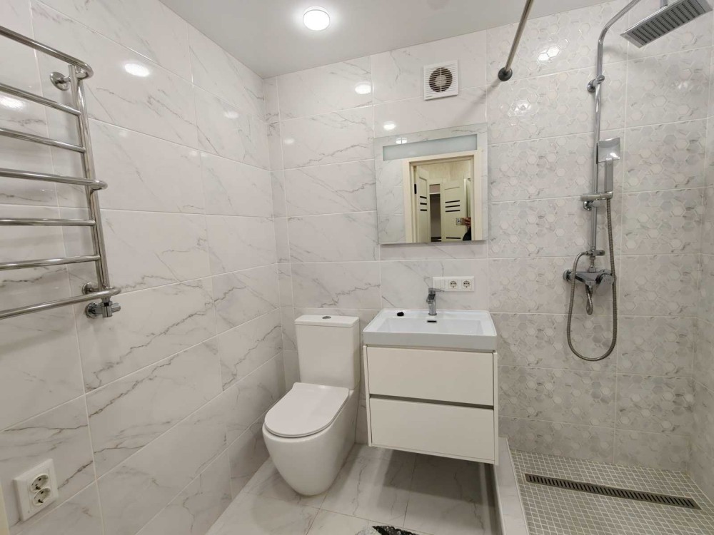 У квартирі продумана сучасна електрика та система освітлення. Встановлені прохідні вимикачі, які дозволяють управляти освітленням коридору як з кухні, так і з кімнати. Витяжку у ванній кімнаті можна вмикати як з самої ванної, так і з коридору.
