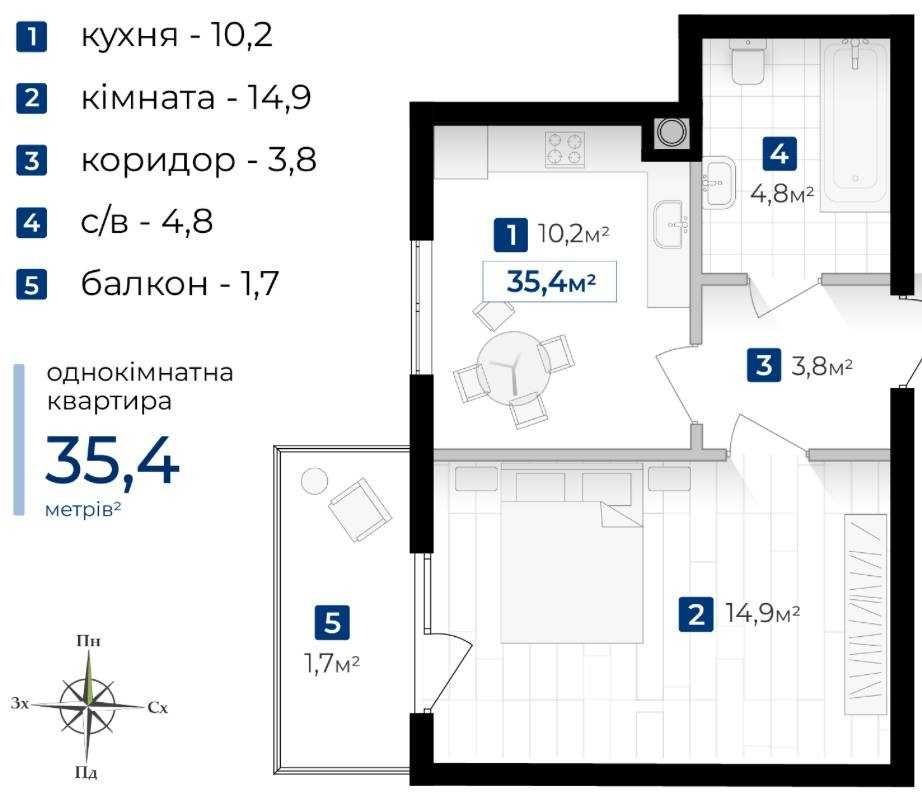 Площа: 35,4 м