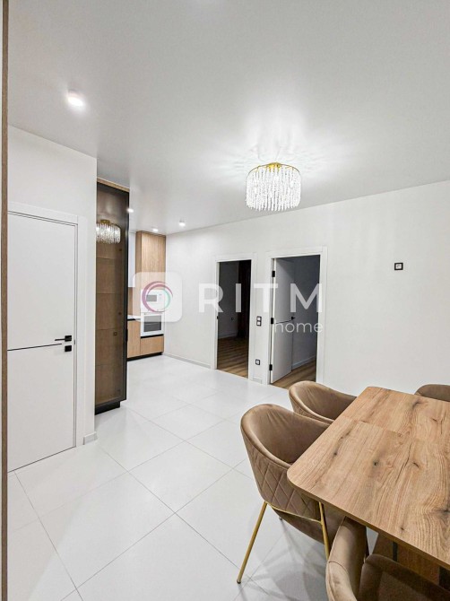 Квартира площею 56 м² із двома окремими кімнатами та об'єднаною кухнею-вітальнею.