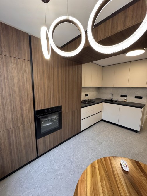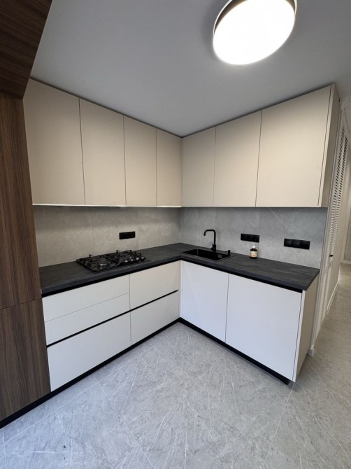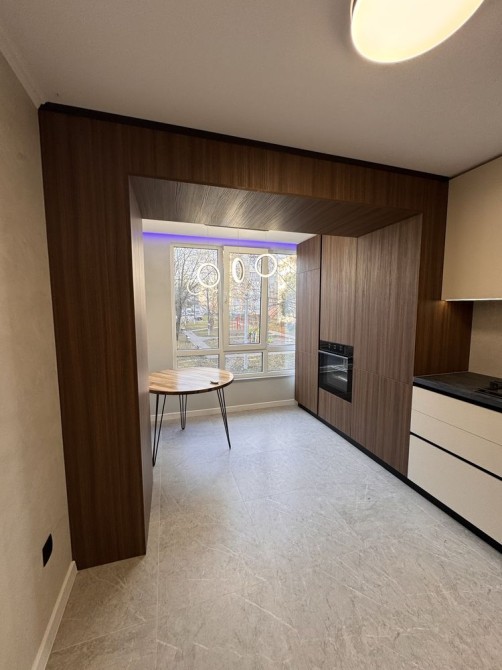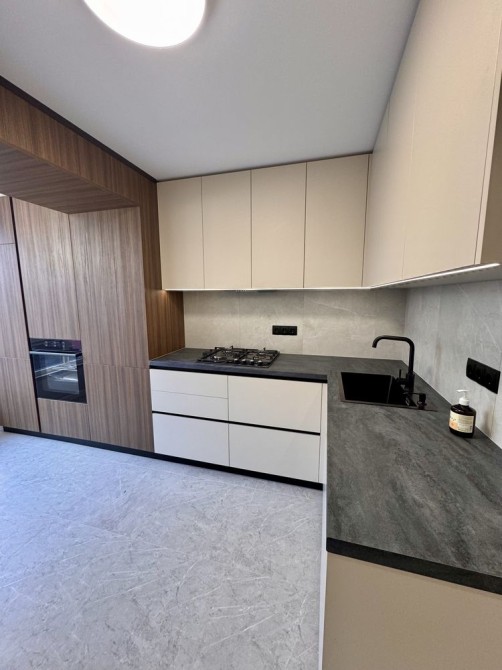 Вмонтований холодильник, духова шафа, меблі та техніка залишаються.