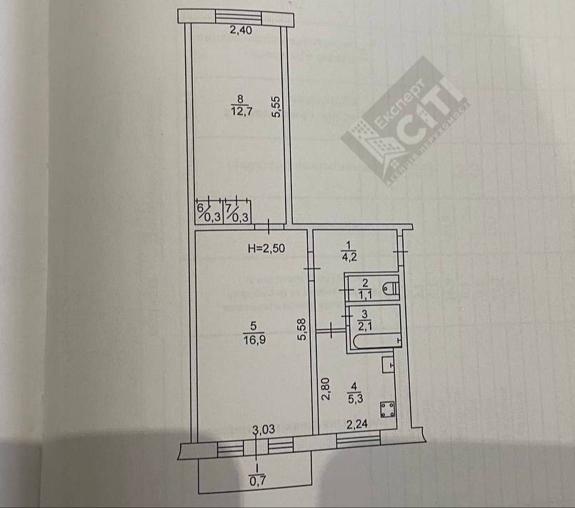 Планування квартири двостороннє.
