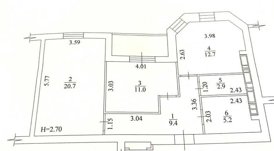 • Трехкомнатная