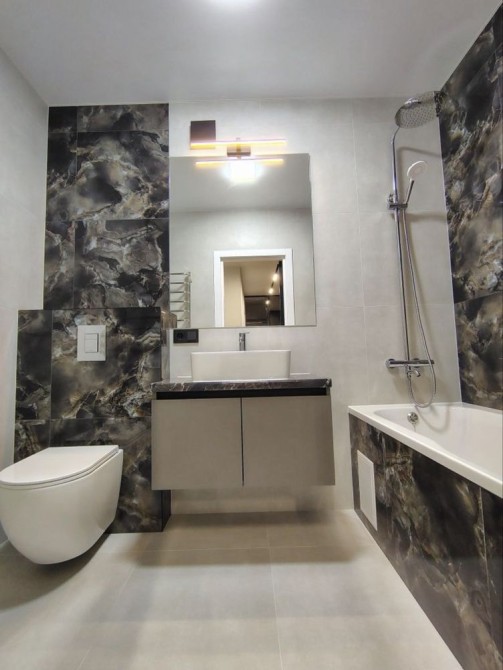 У квартирі виконаний якісний авторський ремонт із використанням сучасних матеріалів. Оселя повністю укомплектована меблями та необхідною побутовою технікою, що дозволяє одразу заїхати і жити без додаткових витрат. Є холодильник, варильна панель, духова шафа, мікрохвильова піч, посудомийна машина.