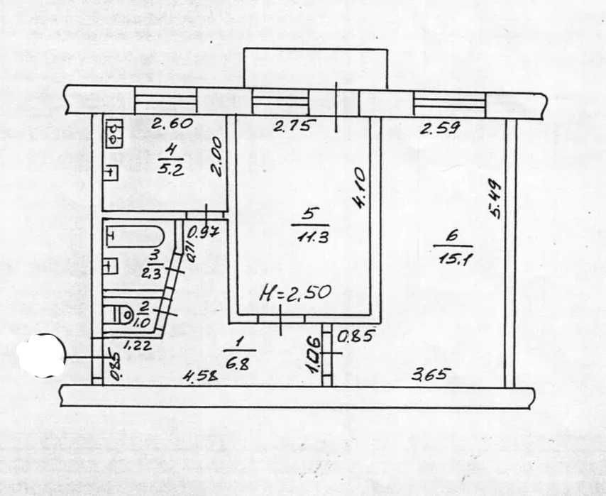 • Площадь кухни 6 м2