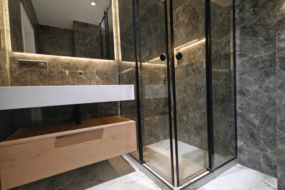 Душова кабіна - бронебійне скло з покритям анті наліт.