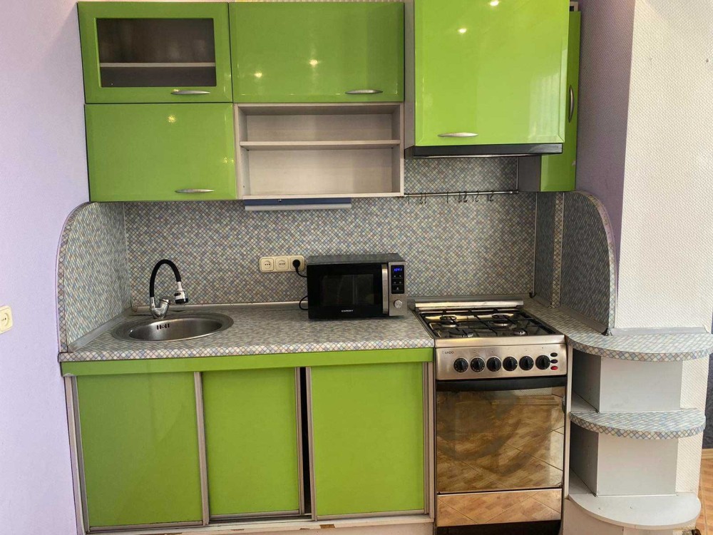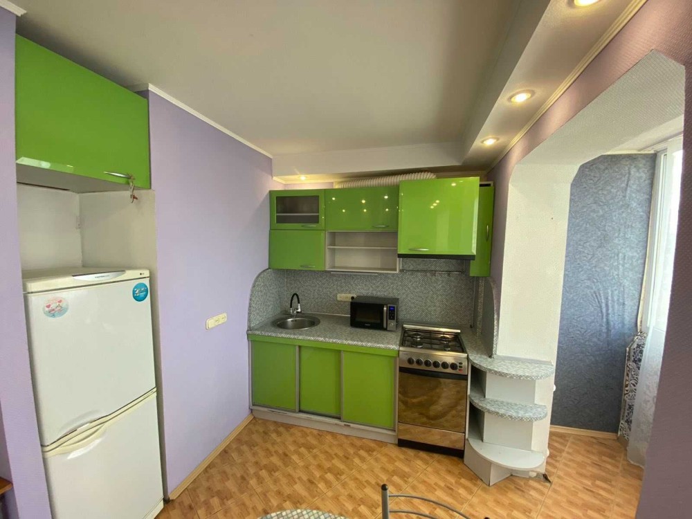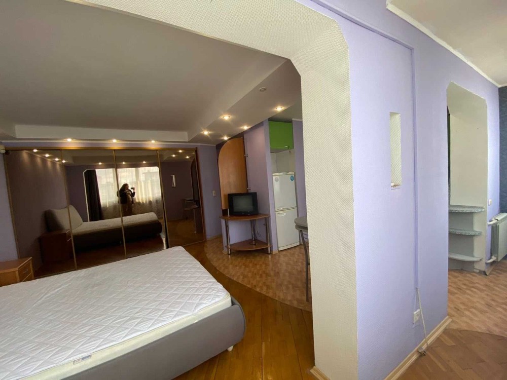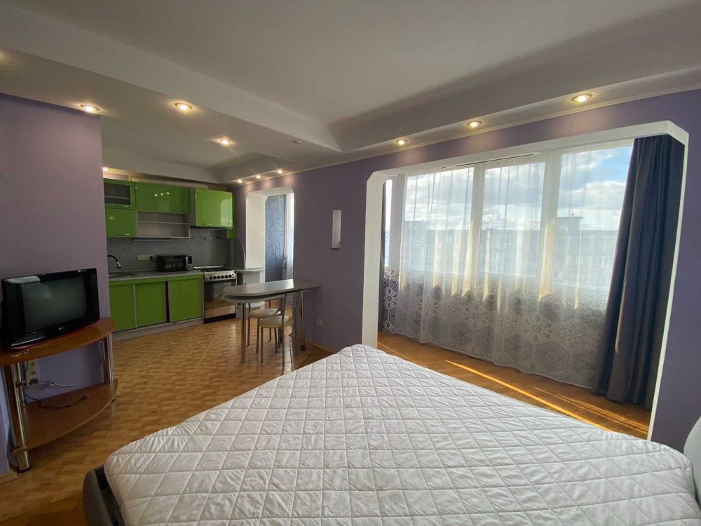 Продається однокімнатна квартира-студія за адресою проспект Оболонський, 5. Повністю укомплектована всіма необхідними меблями та технікою для комфортного проживання та відпочинку. З меблів: двоспальне ліжко з ортопедичним матрацом, простора вбудована шафа-купе, стіл, стільці. З техніки: кондиціонер, бойлер, пральна машина-автомат, холодильник, плита, мікрохвильова піч, телевізор. Кухня вбудована, в нормальному стані. Санвузол суміжний та облицьований сучасною плиткою. До метро Оболонь 2 хвилини пішки.