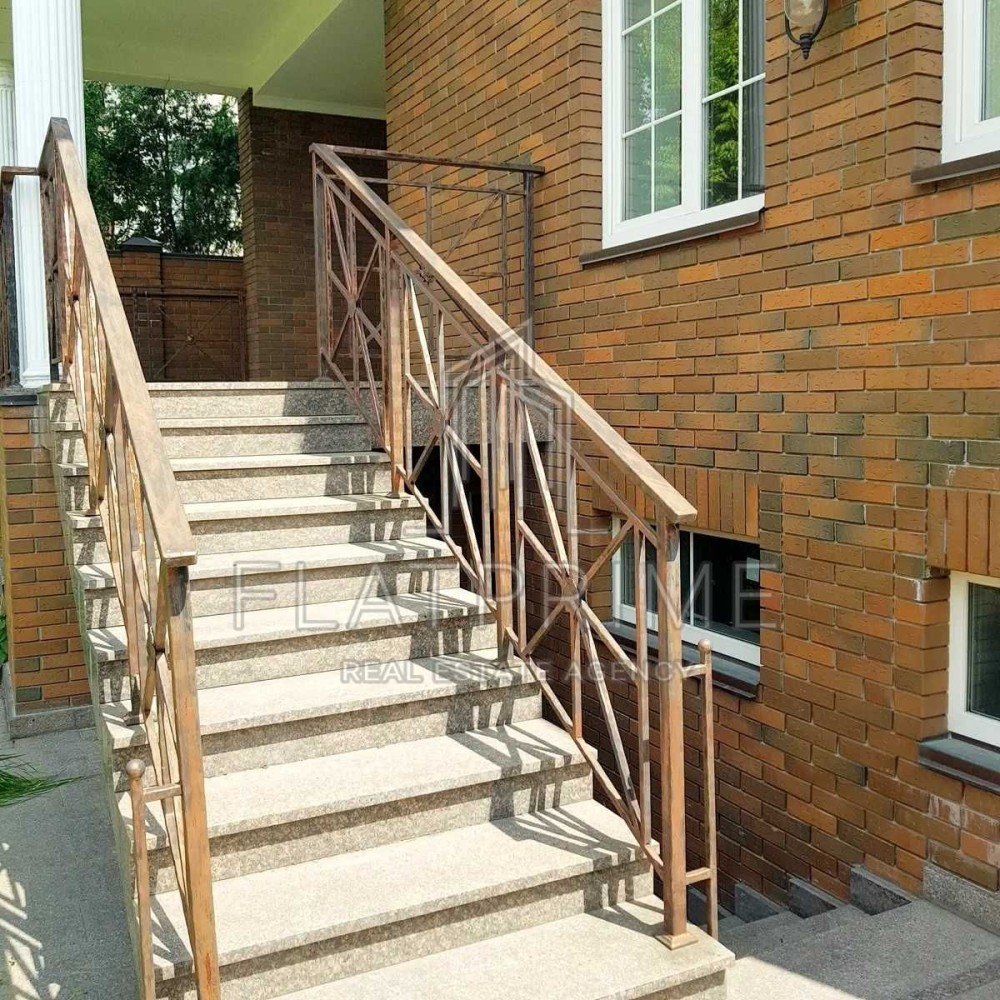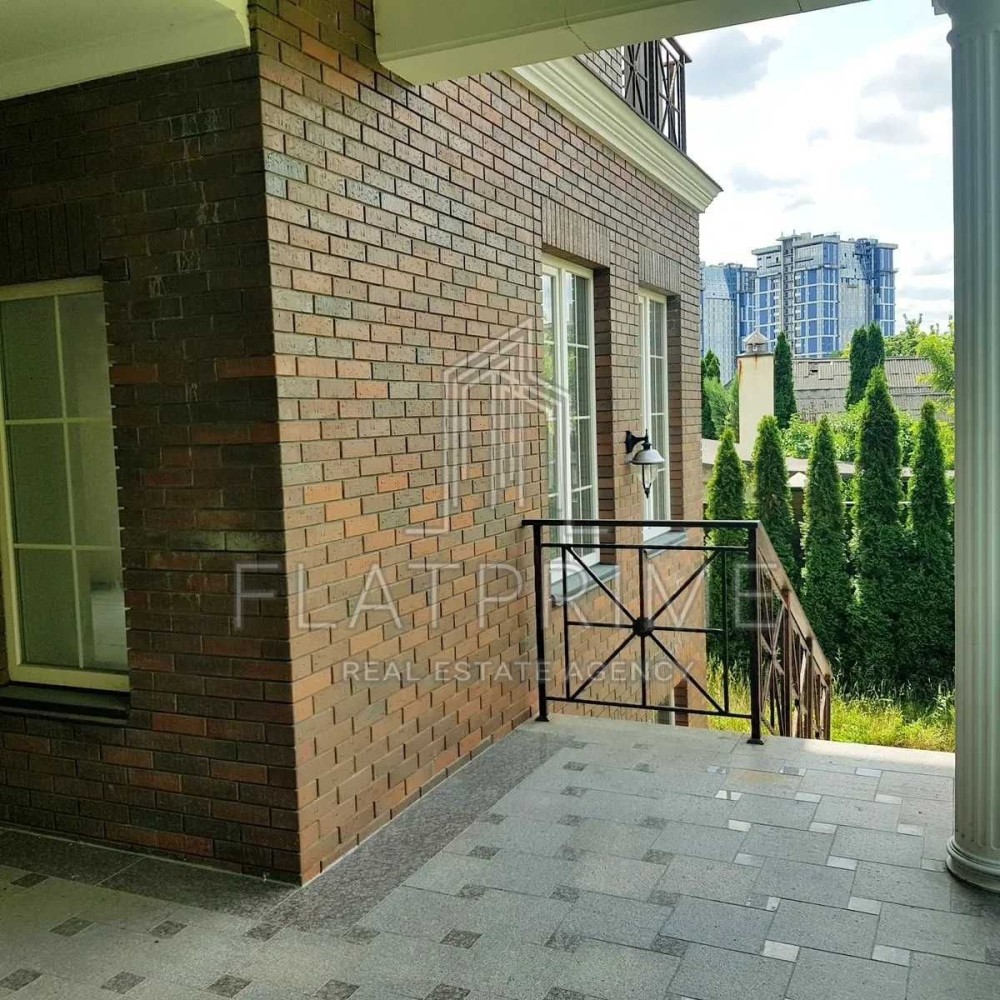 Будинок побудований в англійському стилі у поєднанні суворості та вишуканості з витримкою всіх норм (клінкерна цегла, білі вікна, граніт). Встановлено якісні склопакети "Саламандра". Зроблено внутрішню штукатурку під чистове оздоблення. Виведено розведення електрики, води, каналізації та поливу. У будівництві будинку використовувалися дорогі та екологічно чисті матеріали. У будинку власна котельня обладнана економічними німецькими котлами (2 котли Viessmann по 35 кВт конденсаційного типу споживання газу в 2 рази нижчі від звичайного), бойлер гарячої води. Встановлено опалювальні радіатори, теплу підлогу, кондиціонери, розведення під телебачення та інтернет у кожній кімнаті. Також є відеоспостереження, домофон, сертифікований громовідвід. Просторий гараж на дві машини має автоматичні ворота. Асфальтований під'їзд облаштована прибудинкова територія з автономним поливом. На ділянці ландшафтний дизайн, посаджені фруктові дерева та туї. Гранітне вимощення та тераса. Тихе, спокійне місце для комфортного життя у престижному районі. Поруч розташовані іноземні посольства та представництва.