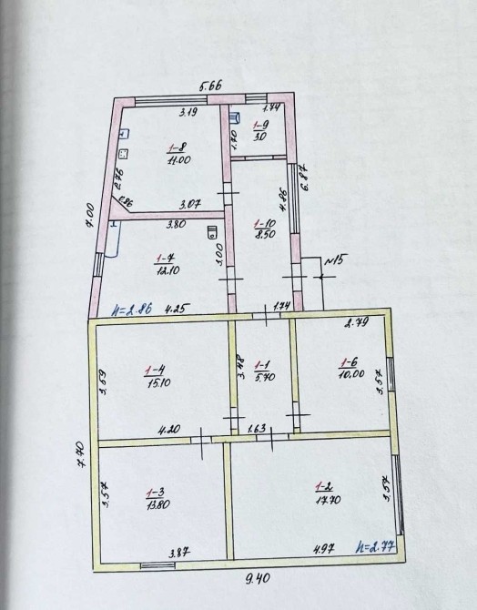У будинку 4 кімнати: 18м2, 14м2, 15м2 та 10м2. Простора кухня-їдальня з обідньою зоною 11м2 та теплою підлогою. Дуже великий санвузол 12м2. Висота стелі 2.75м.