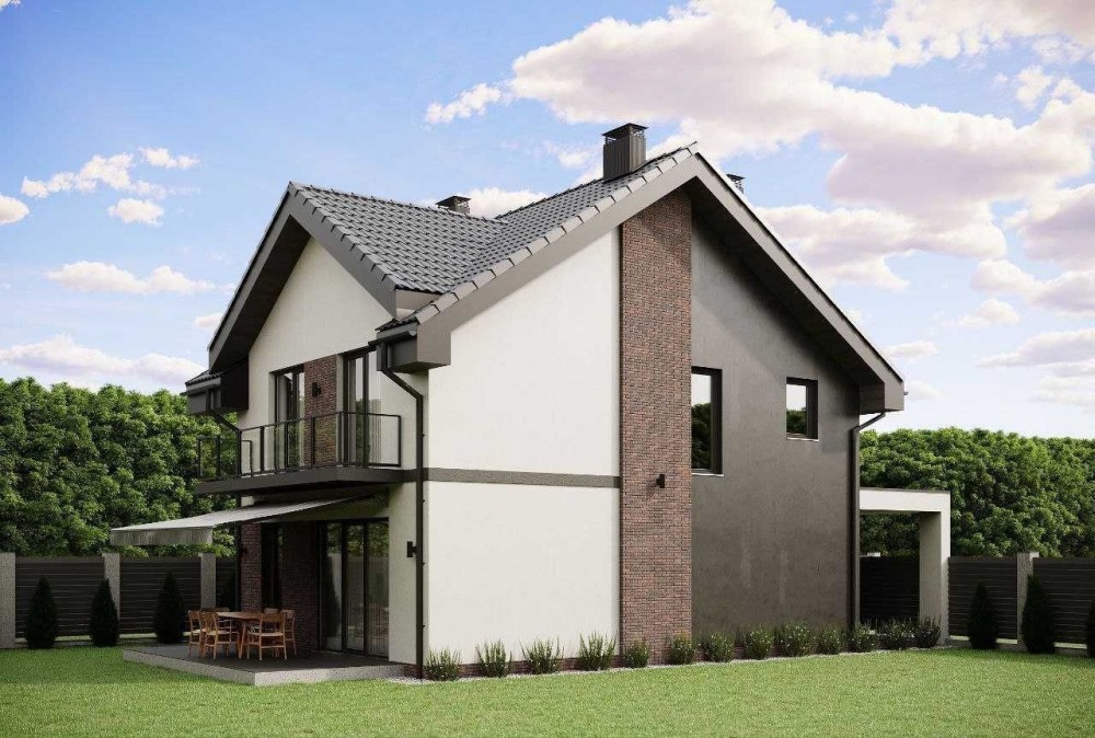 Цегляні стіни, утеплення фасадів 12см, перекриття бетонне, монолітне, 4х - скатний дах.