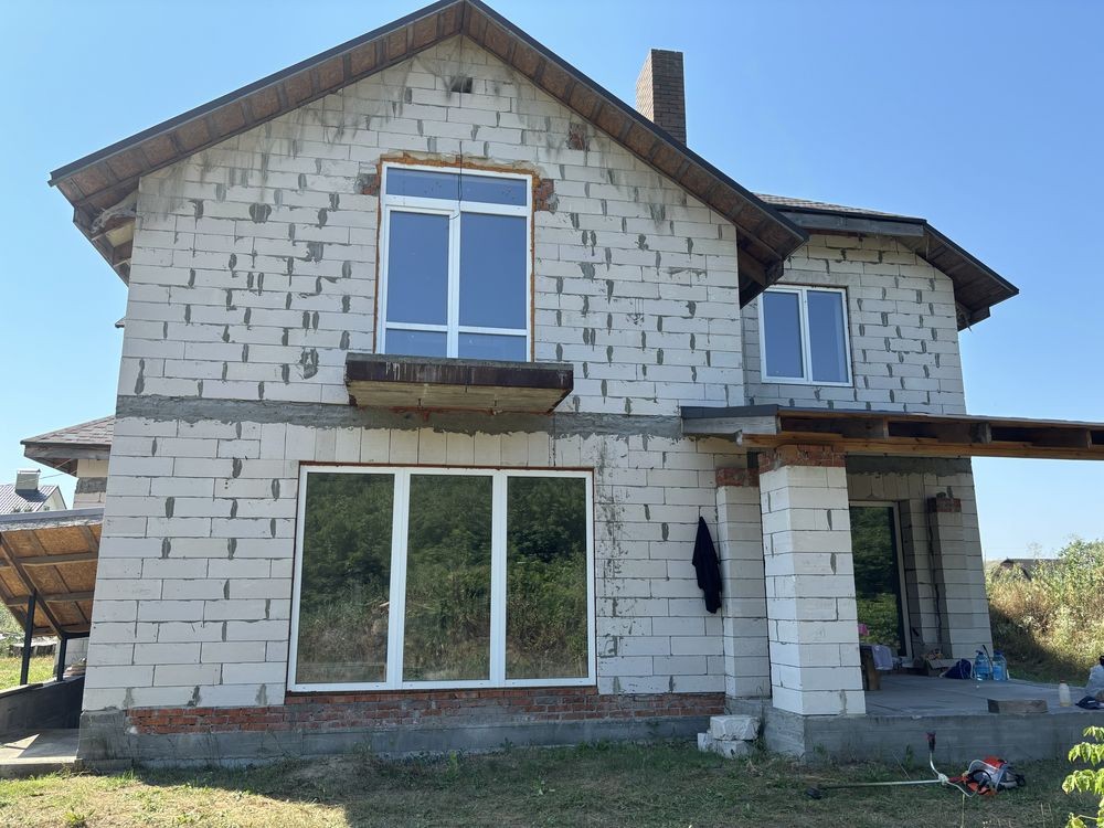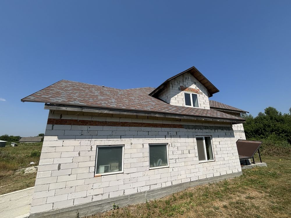 Продається земельна ділянка з будинком в селі Вишеньки, Бориспольського району. Земельна ділянка займає 16 соток землі квадратної форми, будинок збудований в 2020 році з газоблока, товщина стін 40см, будинок складається з 2 поверхів, на 1-му поверсі розміщена: санвузол, спальня для гостей, велика вітальня, кухня, топочна та ще одна дитяча та гараж. На 2-му поверсі розміщена: 3 спальні, 1 робочий кабінет та 2 санвузли. Також є підвальне приміщення. Площа забудови - 230 кв.м. Загальна площа - 272 кв.м. Будівельний обʼєм - 1500 куб.м. Роботи які зроблені в будинку: 1) тепла підлога. 2) радіатори. 3) проведена вся електрика з якісного монолітного кабеля. 3) зроблена машинна стяжка підлоги. 4) гіпсова штукатурка стін. 5) підшита вся стеля гіпсокартоном. 6) дах утеплений мін ватою. 7) проведені всі каналізаційні труби. 8) електронні гаражні двері. 9) бетонне перекриття панелями. 10) енергозберігаючі вікна Rehau.