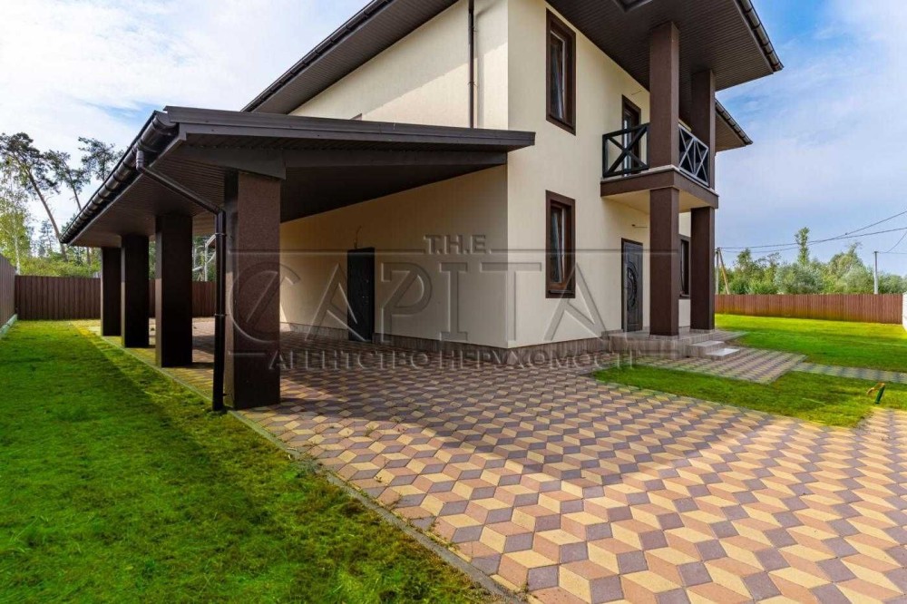 Продається двоповерховий стильний будинок у лісовому приміському районі "Канадське Село".Поруч Національний природний парк Голосіївський з озерами, річка Ірпінь, Пуща-Водиця. Розвинуто інфраструктуру 7 км до ТРЦ "Lavina mall", "Епіцентр", "Сільпо", "Ашан".Функціональне планування: чотири кімнати, кухня-вітальня, два санвузли, топкова, тераса, навіс для двох авто. Ландшафтний дизайн ділянки. Автополив газону. Закрита територія, в'їзд під відеоспостереженням.Якісне будівництво: