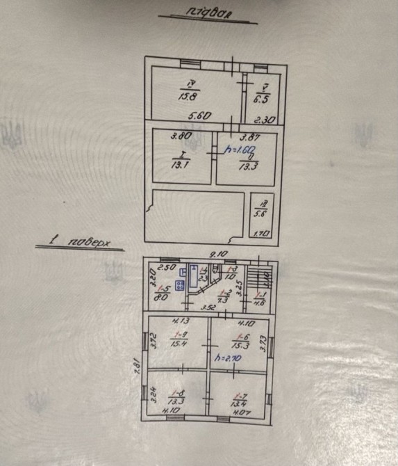 Продається новий індивідуальний житловий будинок котеджного типу загальною площею 131 м.кв. під чистове оздоблення, розташований в селі Крячки Фастівського (колишнього Васильківського) району Київської області на території нового житлового масиву із сучасною котеджною забудовою, що перебуває на відстані 20 км від станції метро «Теремки» міста Києва та за 1,5 км від міста Васильків. Житловий будинок складається з першого та мансардного поверхів. Загальна площа будинку із допоміжними спорудами становить 173,1 м.кв., з яких: а) площа будинку ‒ 131,0 м.кв., у тому числі житлова (основна) ‒ 94,1 м.кв. та допоміжна (підсобна) ‒ 39,6 м.кв.; б) площа тераси – 23,1 м.кв.; в) площа трьох балконів – 13,4 м.кв. (5,8 + 4,9 +2,7 м.кв.); площа ґанку – 5,6 м.кв. Котедж вміщує в собі 5 (п’ять) доволі просторих кімнат, 2 (два) санвузли (на кожному із поверхів), 1 (одне) технічне приміщення (котельня або бойлерна), 2 (два) коридори, 1 (одну) вітальню із виділеною еркером обідньою зоною, що поєднана з кухнею. Із вітальні є окремий вихід на велику терасу, з якої відкривається затишний вигляд на внутрішній двір. Кожна з трьох мансардних кімнат має окремий вихід на балкон. Над усією площею мансардного поверху розташоване містке горищне приміщення. Будинок приєднаний до електропостачання потужністю ‒ 12кВт (3 окремих фази). Має свердловину глибиною 55 метрів із фактичним дебітом (спроможною потужністю) ‒ 2,5 м.куб./год. та каналізацію септик з переливом на 11 м.куб. На усій площі першого (крім житлової кімнати) та у санвузлі мансардного поверхів встановлена система водяної теплої підлоги фірми «Rehau». По котеджу розведені: опалення, водопостачання і каналізація. В будинку передбачена можливість встановлення камінної топки, а також приєднання котеджу до газорозподільної мережі та всесвітньої мережі Інтернет. Індивідуальний житловий будинок розташований на земельній ділянці площею 0,075га з цільовим призначенням – (02.01) для будівництва і обслуговування житлового будинку, господарських будівель і споруд (присадибна ділянка). Під житловою забудовою перебуває 0,0115га земельної ділянки, решта 0,0635га займає просторий двір. Кадастровий номер земельної ділянки: 3221487004:03:006:0328. Земельна ділянка огороджена парканом із монолітного фундаменту, що опорядковане металевим штахетом із обох боків та металевим профілем з тильної та фасадної сторін. Заїзд у двір має відкатні ворота. На території двору (перед будинком) облаштоване загальне паркомісце на 2 (два) автомобіля, решта двору засіяне газонною травою. Котедж побудований з якісних матеріалів за проектом європейського архітектурного бюро. Так, фундамент, перекриття та міжповерхові сходи ‒ монолітні. Стіни будинку збудовані з газоблоку AEROC D500 (товщиною 300мм), що утеплений пінопластом 100мм. Внутрішні міжкімнатні перегородки виконані із цегли. Дах ‒ металочерепиця фірми «Ruukki», що утеплений мінераловатними плитами загальною товщиною 200мм. Вікна вироблені з профілю фірми «Rehau» серії EVRO 70. Фасад котеджу покритий акриловою штукатуркою. Будинок за усім периметром має вимощення шириною 0,9 метри, що облаштоване фігурними елементами мощення (ФЕМ). Зручне ергономічне планування будинку, а також наявність високих стель обох поверхів дає можливість відчувати себе вільно і затишно. Завдяки правильному утепленню зовнішніх стін будинку, у ньому прохолодно влітку та тепло вз