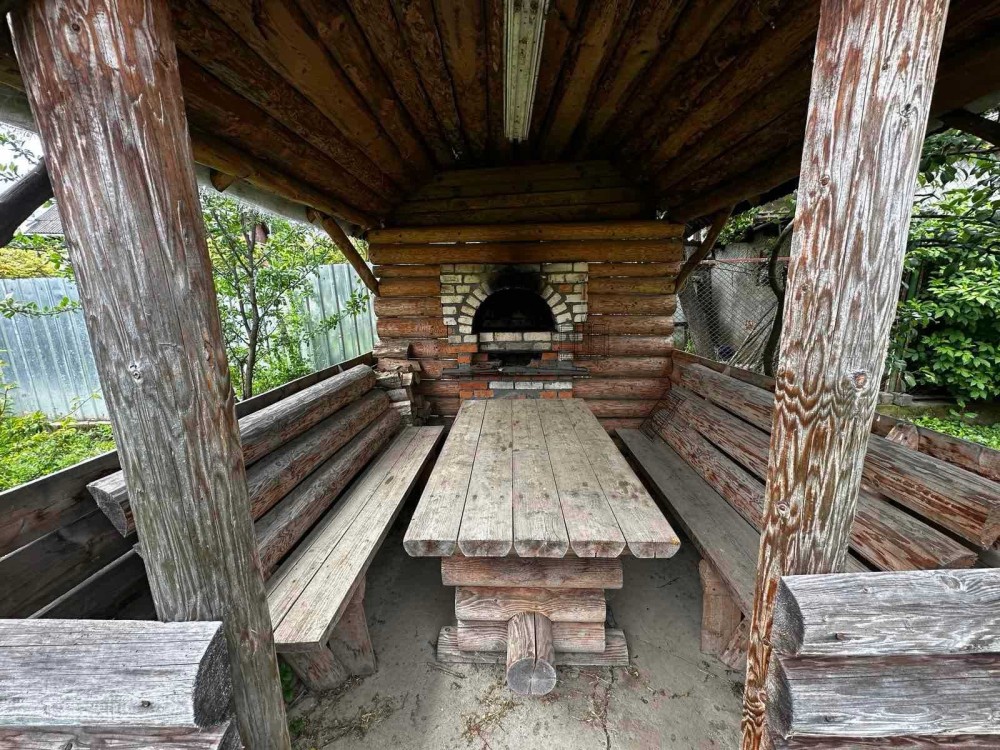 На території будинку є гараж, альтанка з мангалом та сільськогосподарські приміщення.