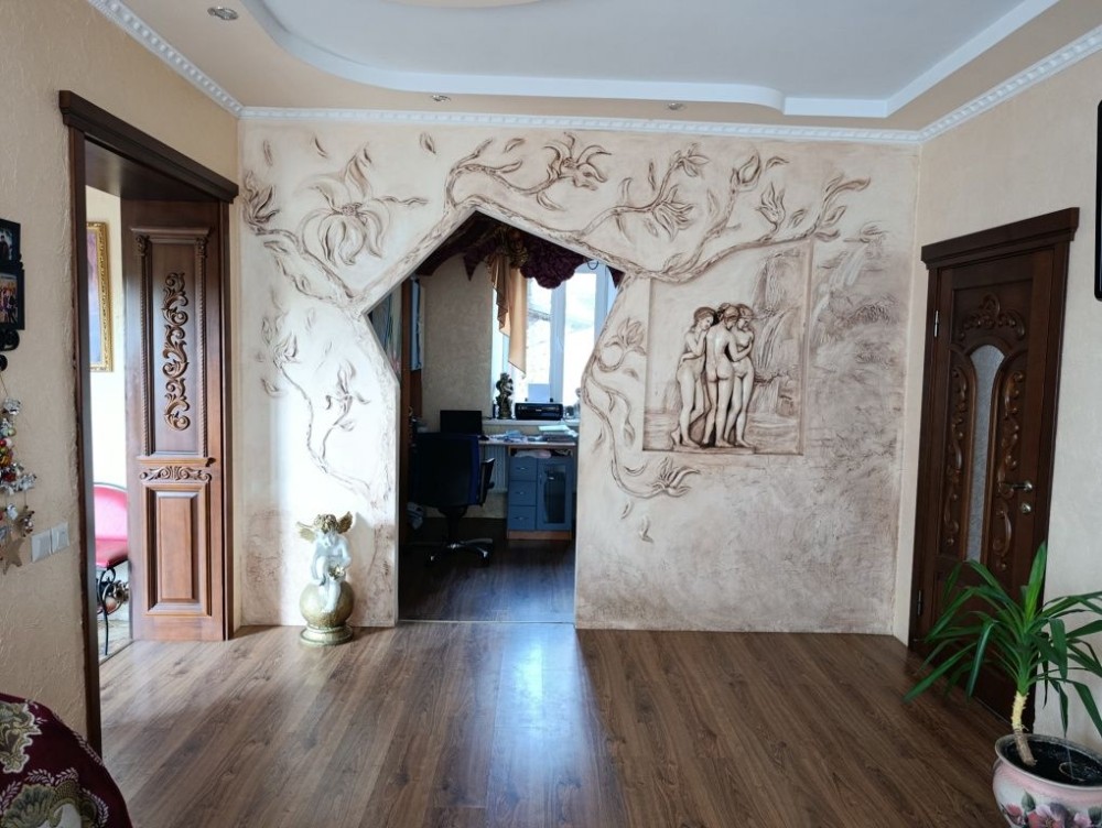 В кімнатах ламінат, декоративна штукатурка