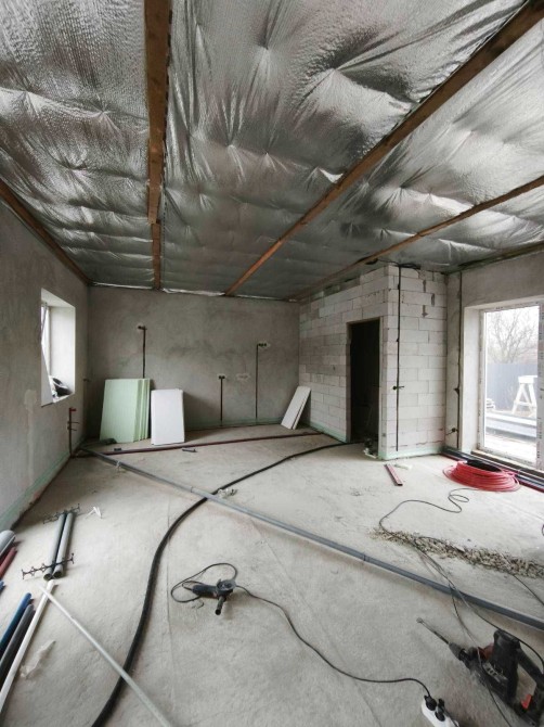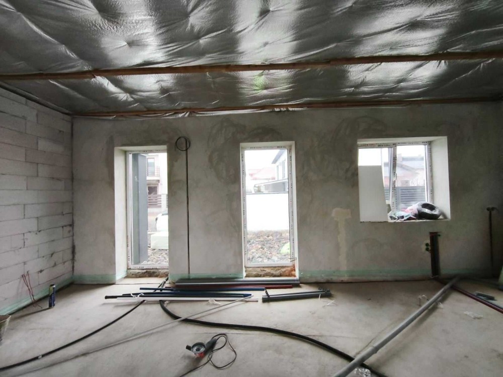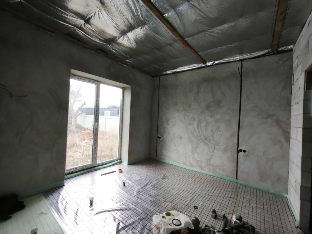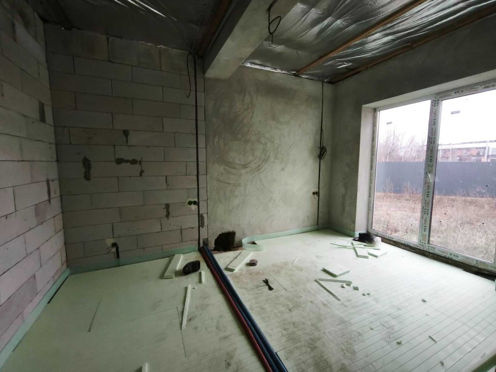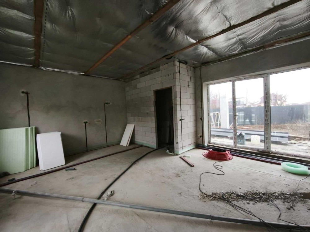 Всередині надається забудовником таке наповнення : стіни поштукатурені, вимуровані перестінки, тепла підлога по всьому будинку , чистова стяжка, розведена електрика та сантехніка, вмонтовані інсталяції, стеля підшита плівкою та утеплена 20 см мінватою.