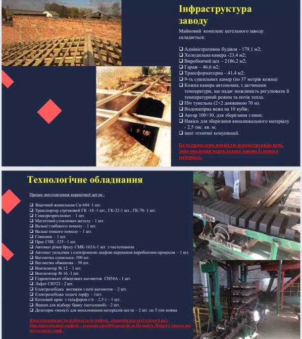 Пропонується до продажу повністю автономний, діючий цегельний завод у м. Носівка, Чернігівська область, з вигідним розташуванням всього в 95 км від Києва.