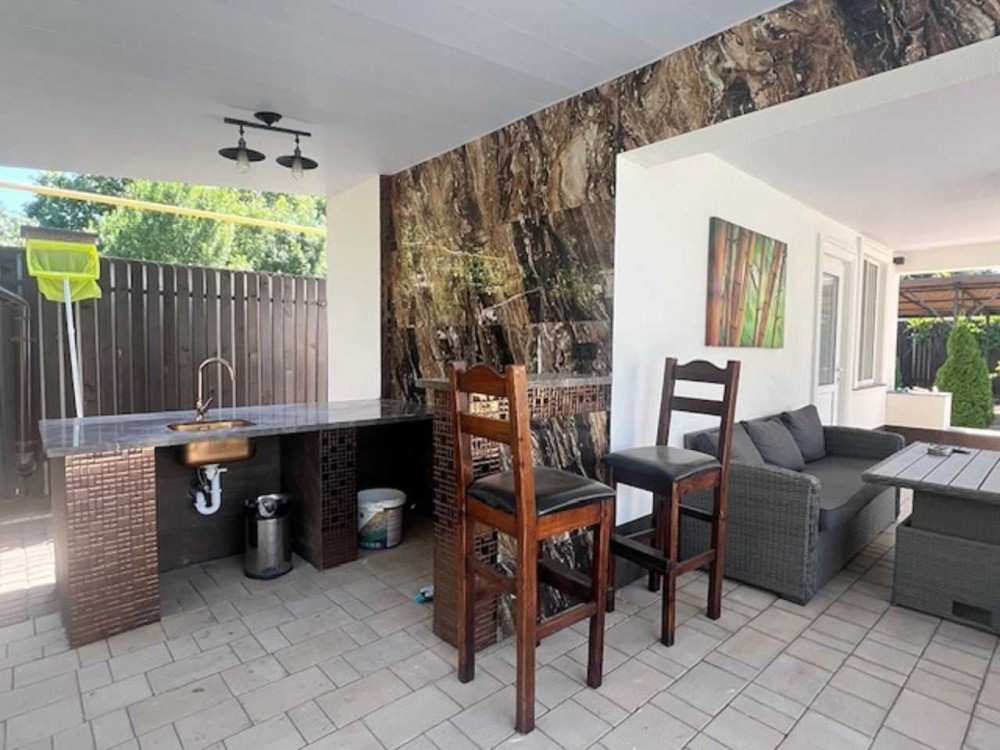 Есть барбекю зона, бассейн, гараж и крытое парковочное место.