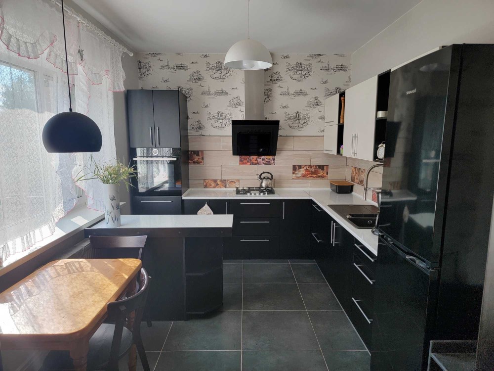 Продається просторий та сучасний будинок площею 102 м² у зручному та тихому районі, всього за 25 хвилин пішки до центру міста. Будинок має 4 житлові кімнати, затишну кухню, ванну кімнату та коридор. Для вашої зручності в кухні встановлено сучасну та дорогу кухонну техніку Bosch. Загальна площа господарства приблизно 40 сотих.