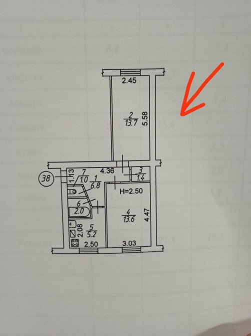 • Площадь кухни 5 м2