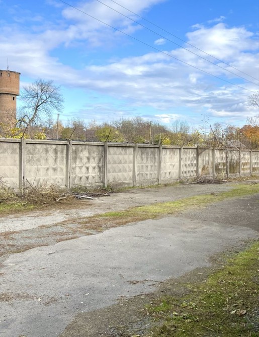 Ділянка повністю загороджена по периметру високим бетонним парканом з колючим дротом.