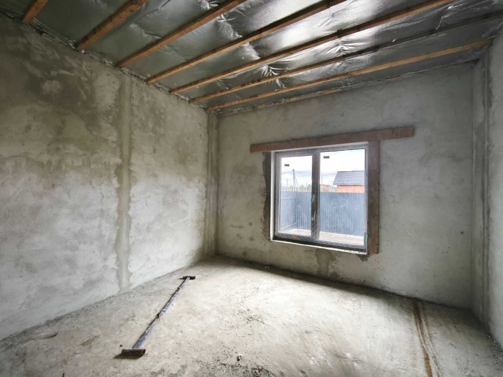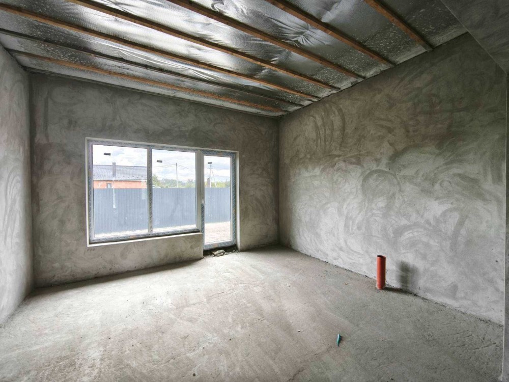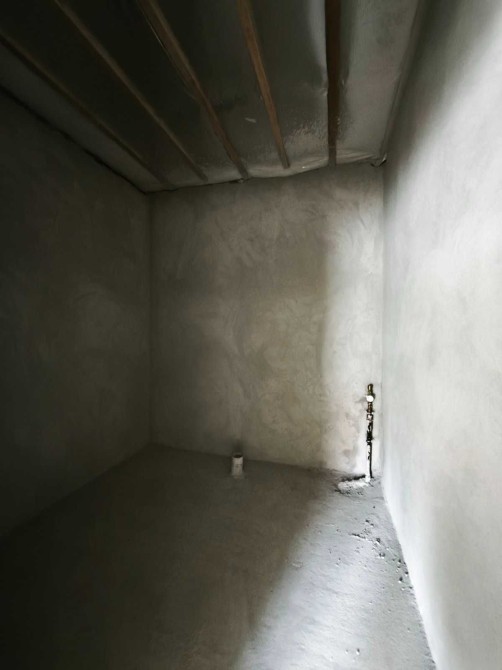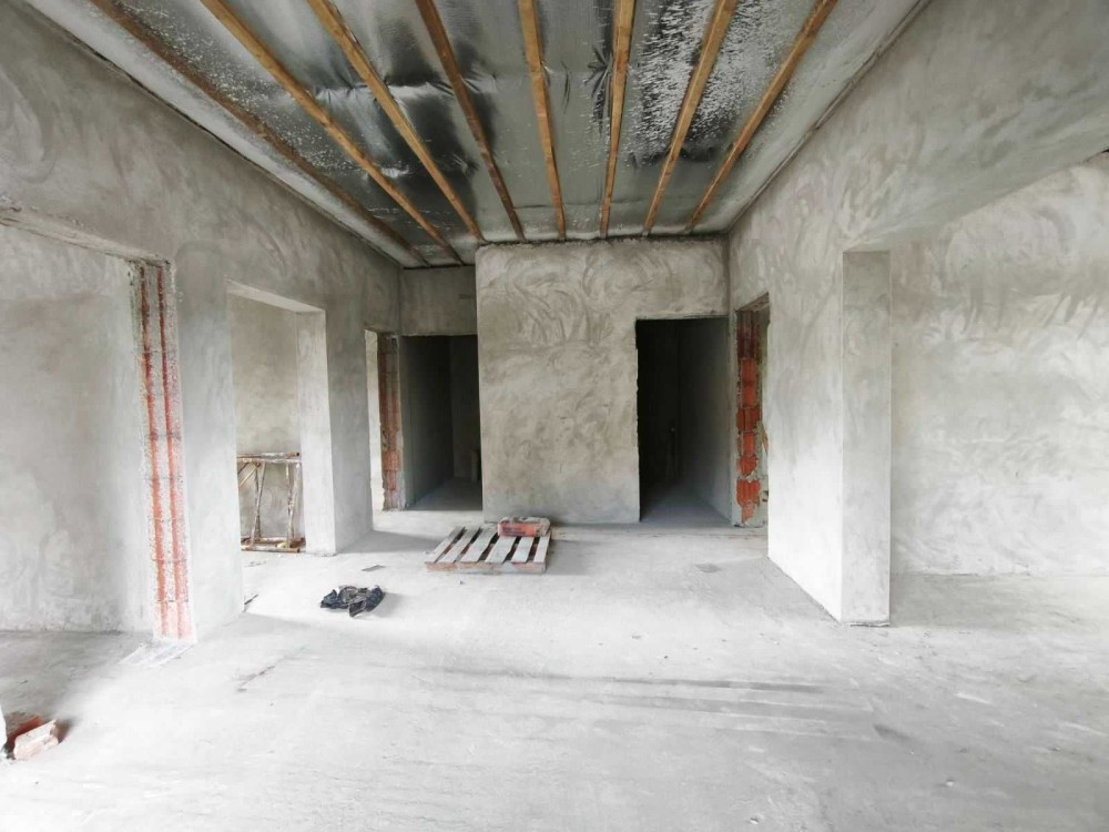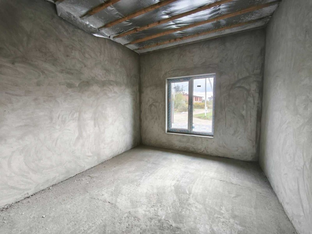 – Всередині перестінки з цегли, стіни поштукатурені, заведений силовий кабель без розводки, заведена каналізація без розводки, чорнова стяжка.