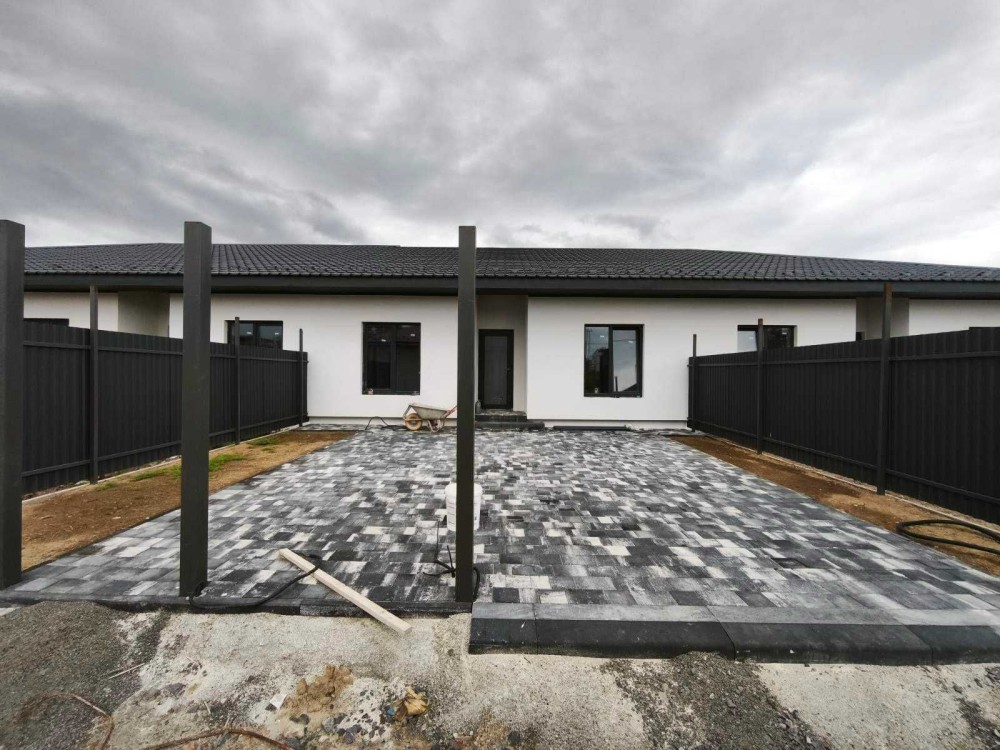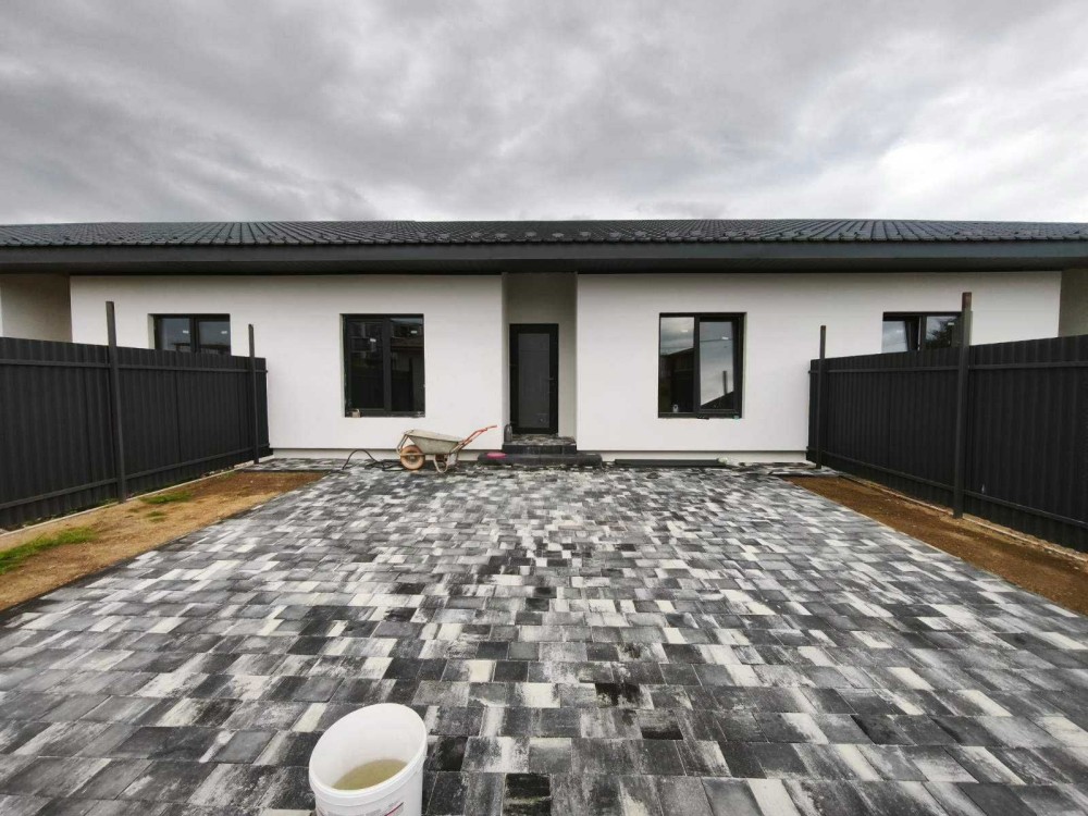 – Подвір’я викладено бруківкою, підсипано чистовим грунтом, встановлений паркан від сусідів та буде встановлений паркан фасадний з калікою та воротами.
