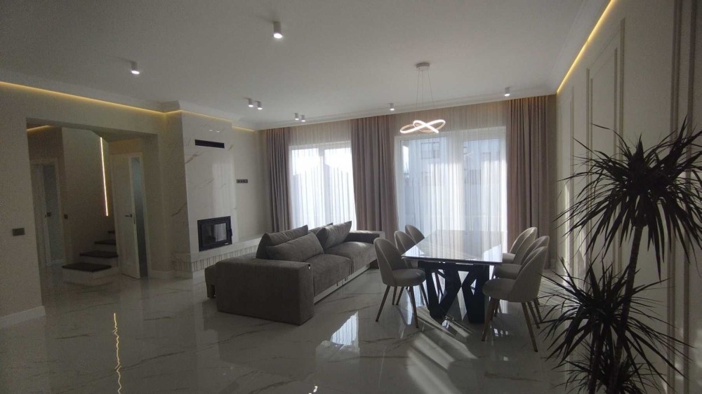 Всередині котеджа зроблено сучасний дизайнерський євроремонт, встановлена вмонтована кухня з технікою Whirlpool, облаштована меблями спальня та вітальня , облаштовані санвузли (інсталяція, ванна, душова, змішувачі прихованого монтажу), гардеробна.