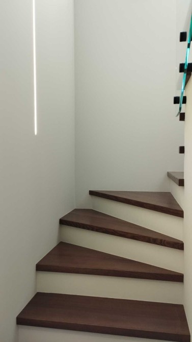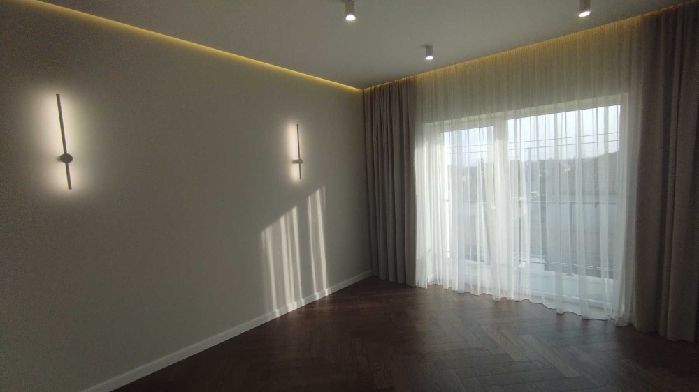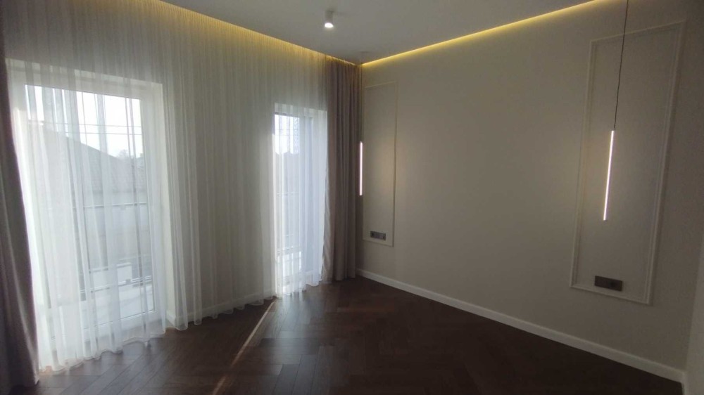 Зручне та продумане планування- перший поверх: гараж з автоматикою, котельня з виходом на подвір’я, санвузол, кухня – студіо з виходом на терасу. Другий поверх: санвузол, три окремі кімнати кожна із яких має вихід на балкон та простора кімната-гардеробна площею 13 м.кв.
