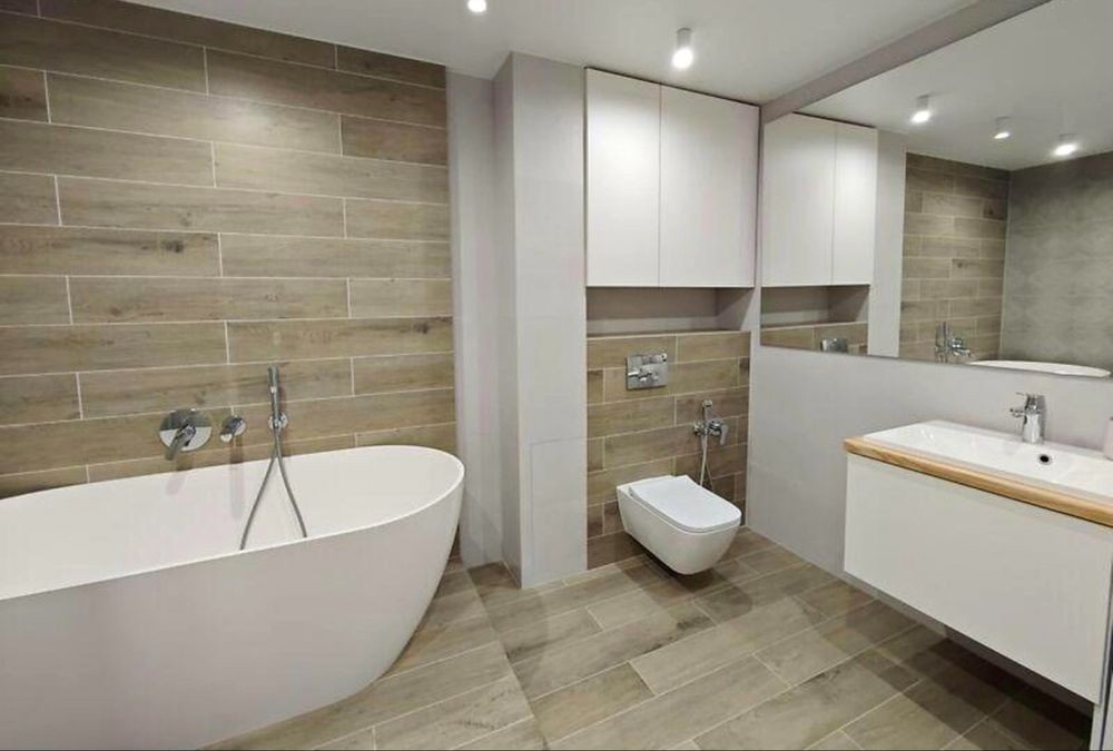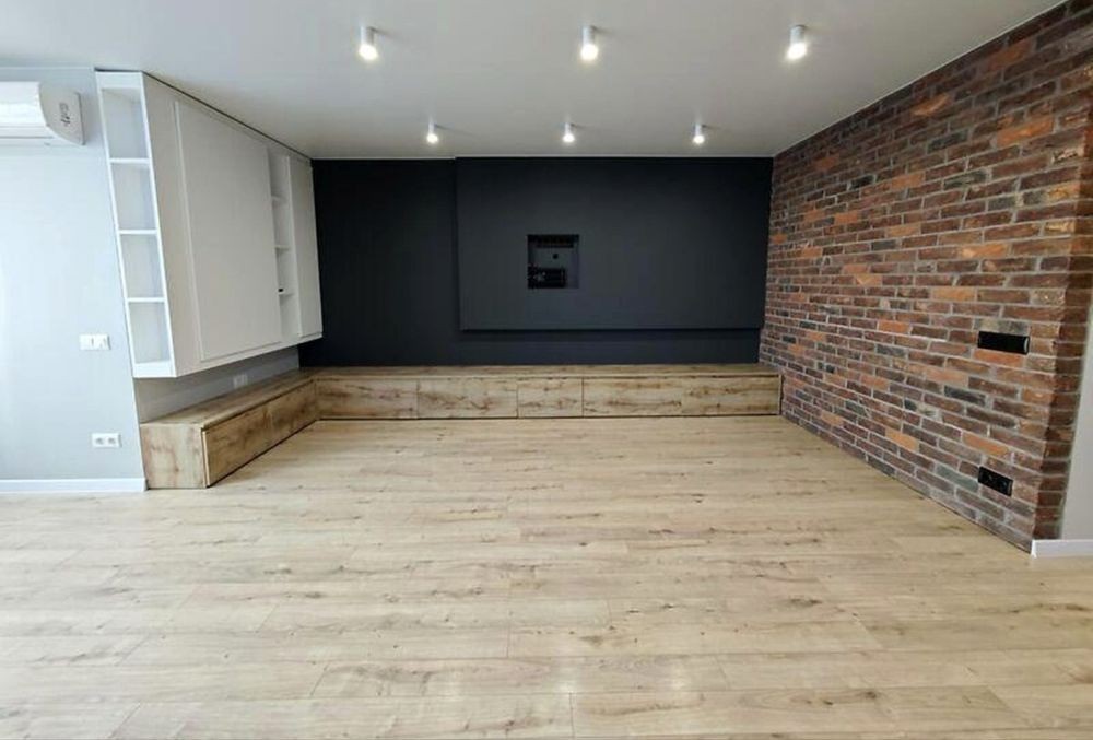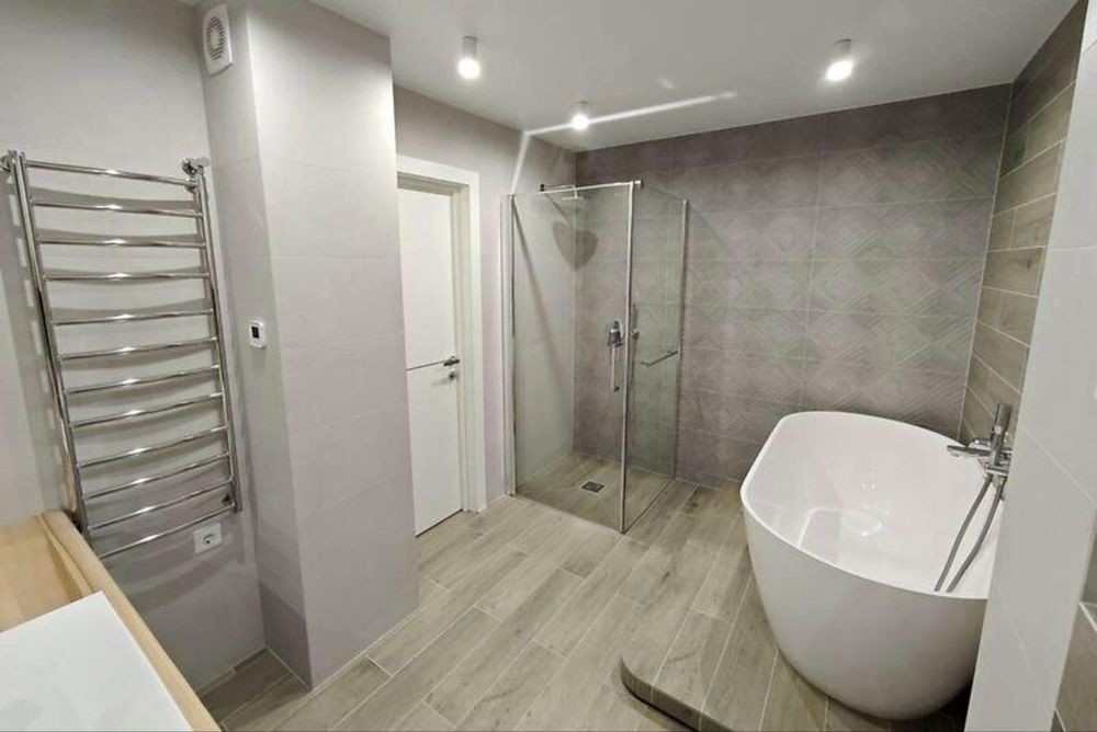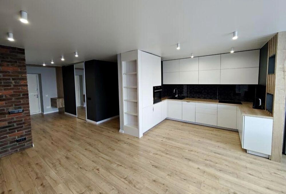 У квартирі тепла підлога, інверторні кондиціонери, Rehau вікна, STRAJ двері, Grohe, Geberit, KOLO сантехніка, кухня з технікою.