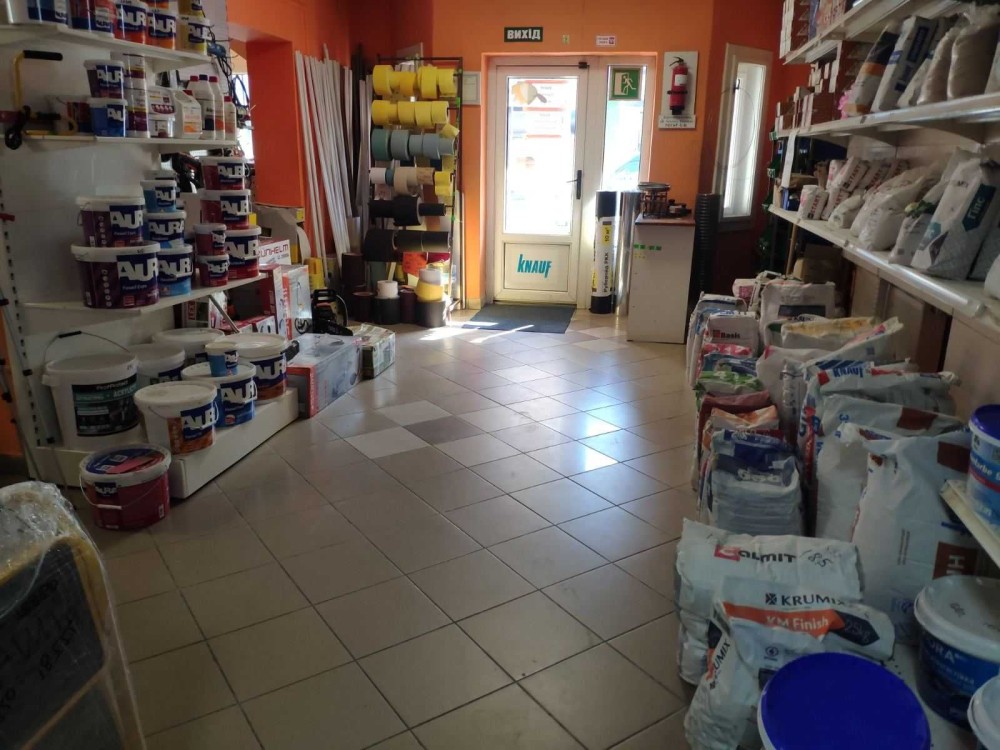 Діючий магазин,площа 550 м2 ,Знаходиться в м.Тячів вул.Гагаріна ,опалення газ/світло,є колірувальне обладнання фарби-штукатурки,є можливість збільшити торгову площу,персонал навчений працює практично автономно.