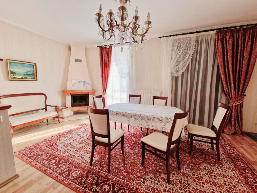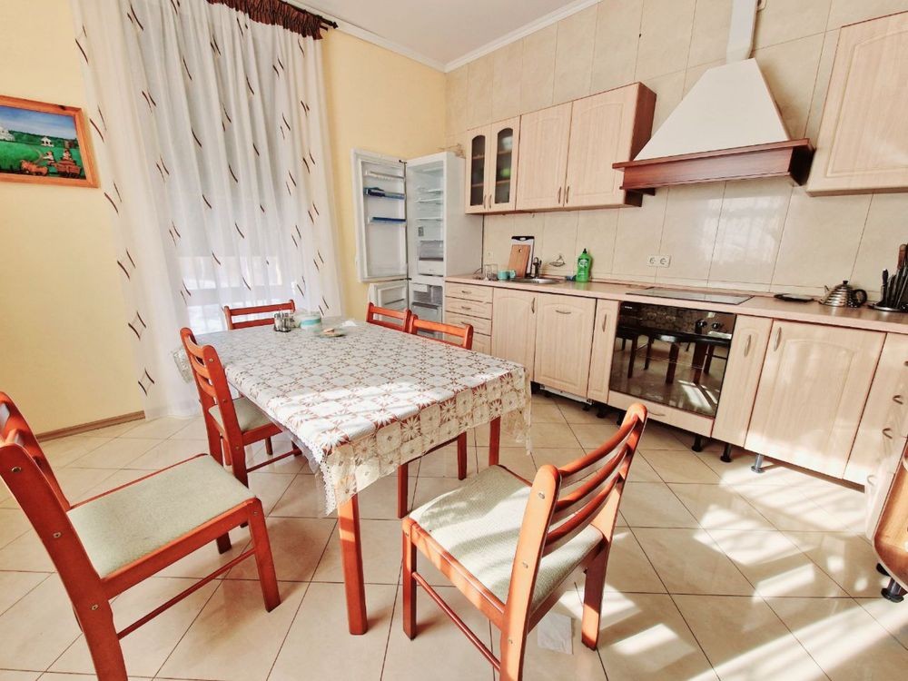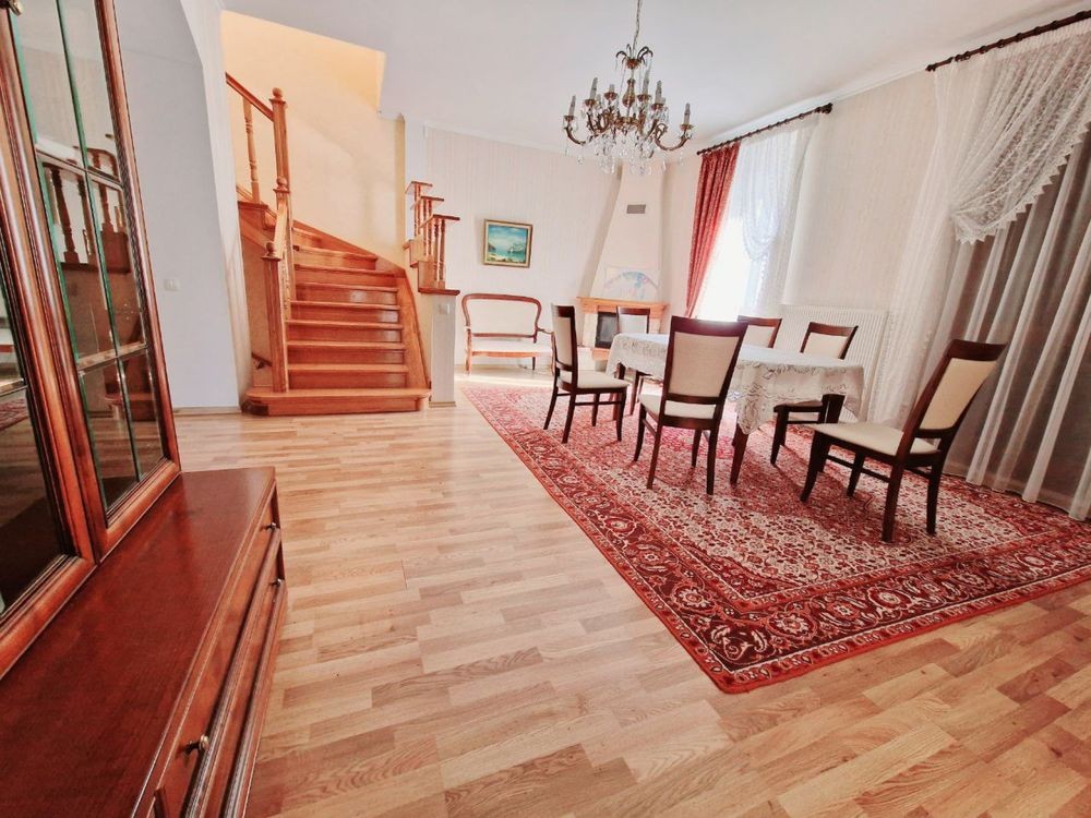 Кухня 10 кв.м. Будинок складається з 5 житлових кімнат, кабінету ( мансарда), цокольне( технічне) приміщення, гараж. В будинку 4 санвузли.