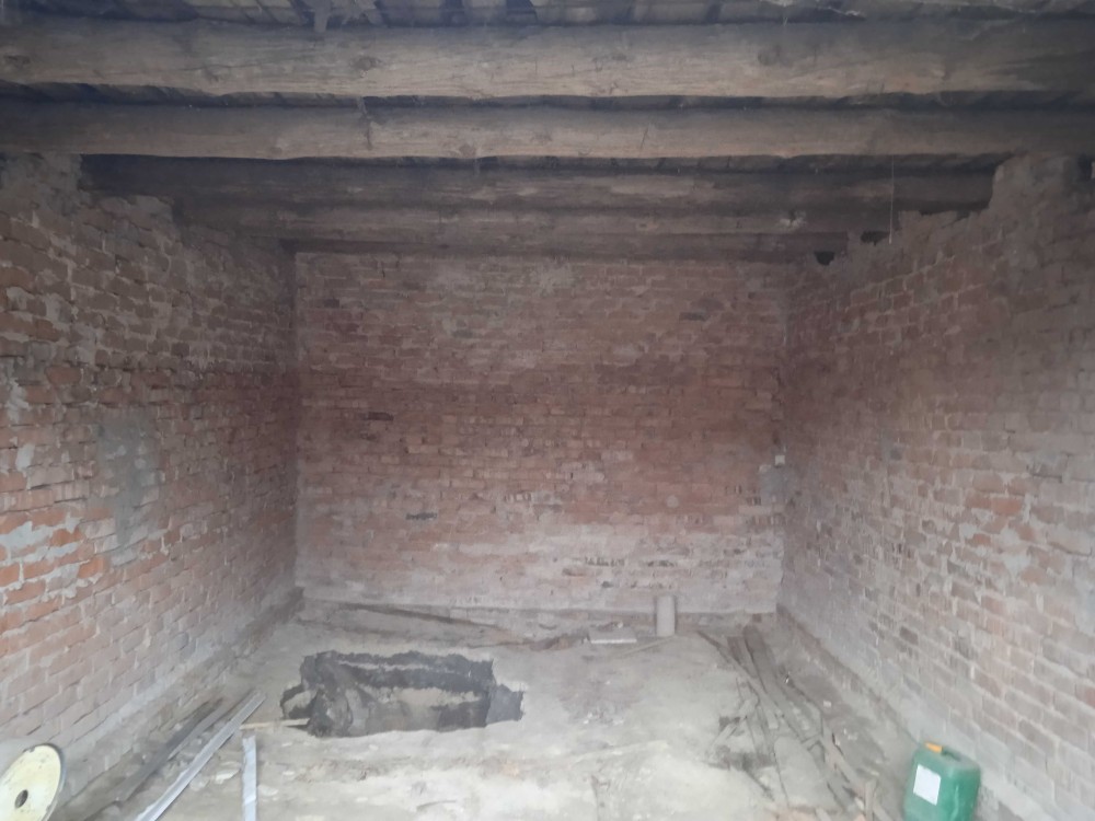 Гараж потрібно добудувати всереден, є яма, погреб.