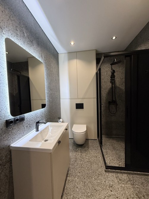 Квартира повністю готова до проживання — якісний дорогий ремонт, стильне меблювання, продумане планування та повна комплектація. Інтер’єр виконаний у сучасному мінімалістичному стилі: теплі відтінки, елегантні фактури, вбудовані меблі та освітлення, яке створює особливу атмосферу затишку.