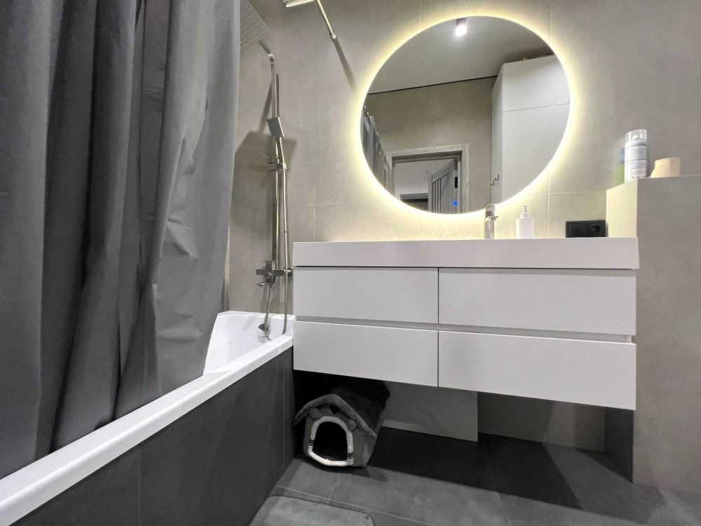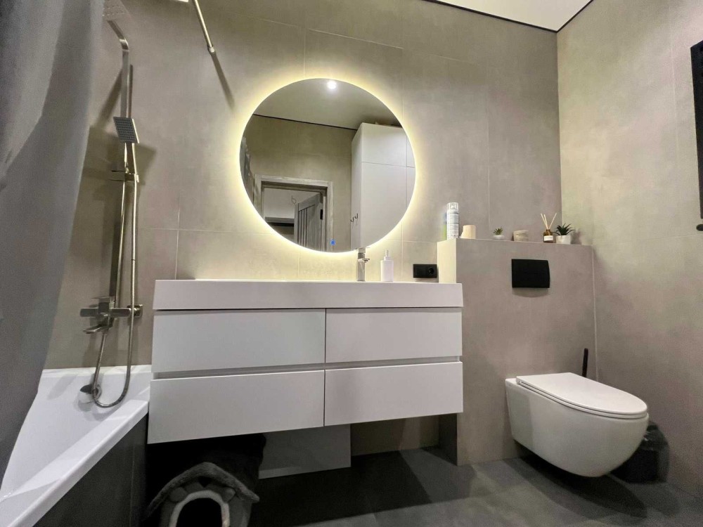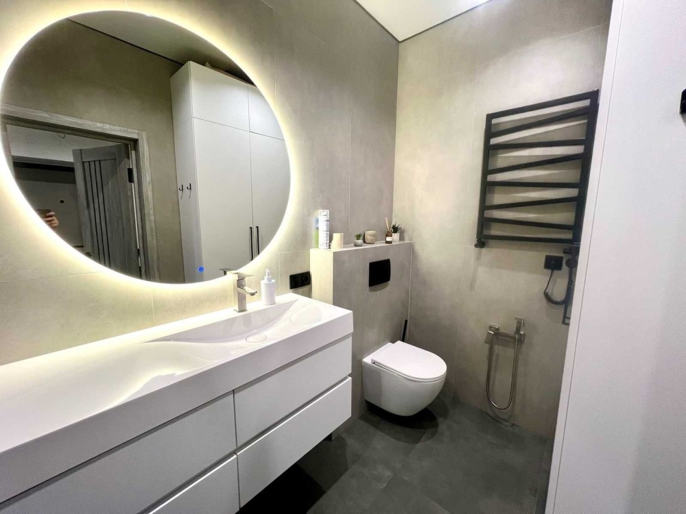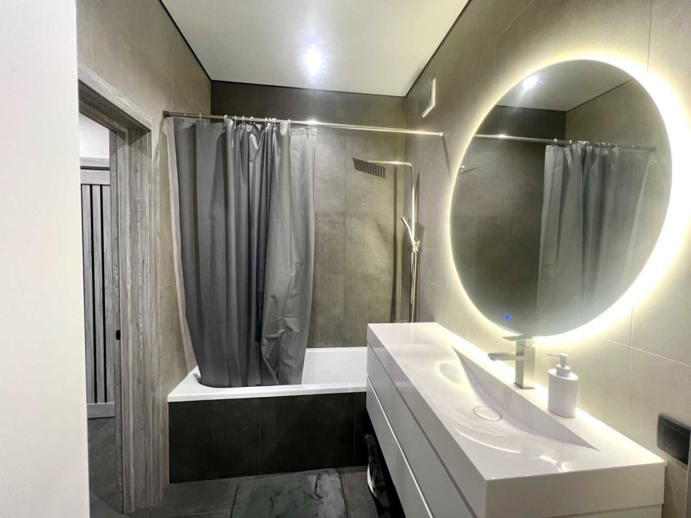 Ванна: підігрів підлоги, тропічний душ, інсталяція, багато додаткового освітлення, велика вмістка шафа.