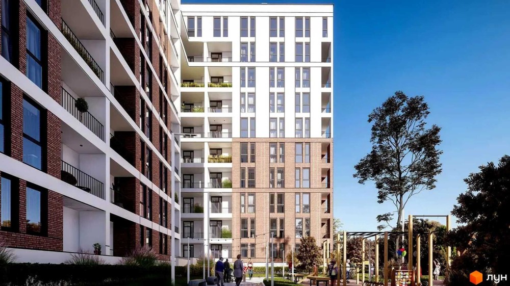 Складається з окремої спальні, кухні з виходом на балкон та суміжного санвузлу.
