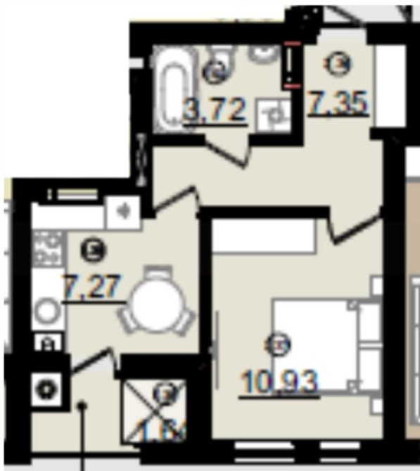• Общая площадь 30.91 м2