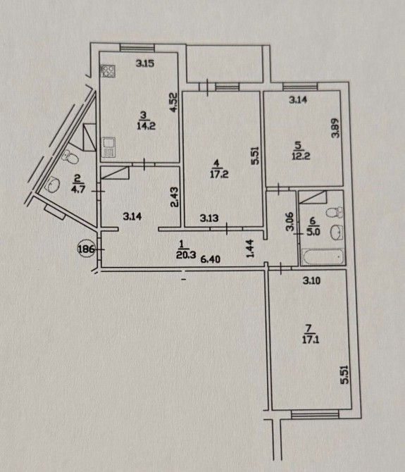 Квартира світла, тепла та затишна із загальною площею 62 кв. м, житлова – 45,4 кв. м та кухня – 6 кв.м. Санвузол – роздільний. Є балкон.